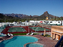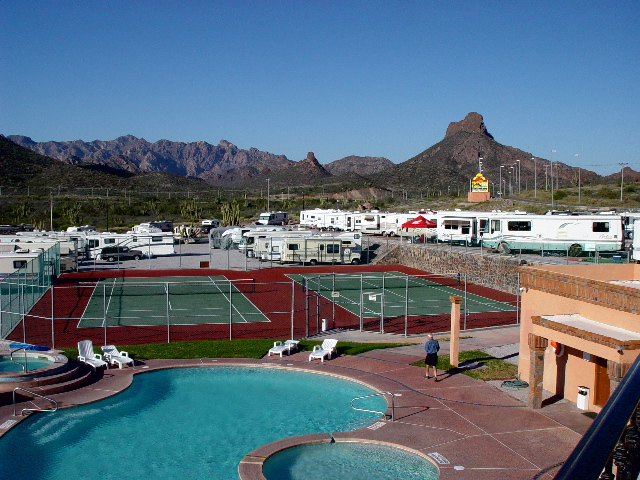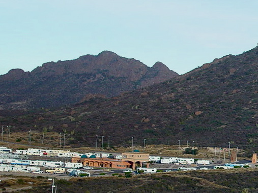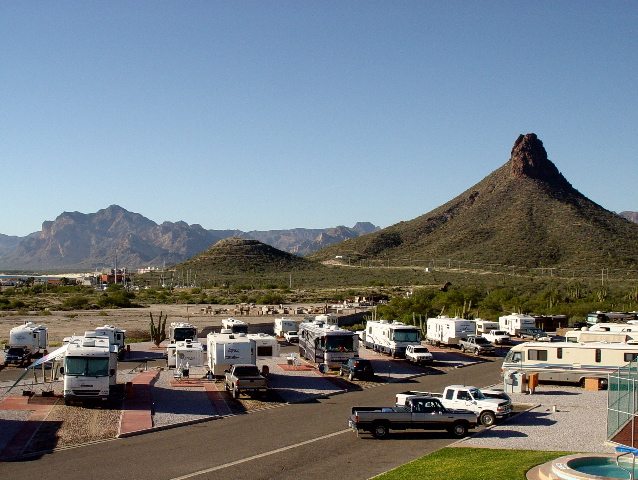 | Our first stop was the most luxurious we would encounter in Mexico. The El Mirador RV Park is the crown jewel of San Carlos, a charming resort town on the Sea of Cortez just north of Guaymas. |