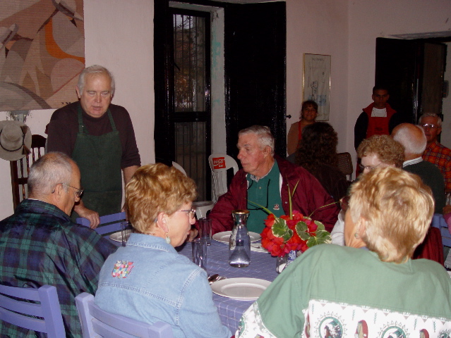 | Facing the church across the plaza was a gracious colonial residence in which a refugee chef from San Francisco has long conducted a locally celebrated restaurant. Here we enjoyed our final dinner in the Alamos area. |
