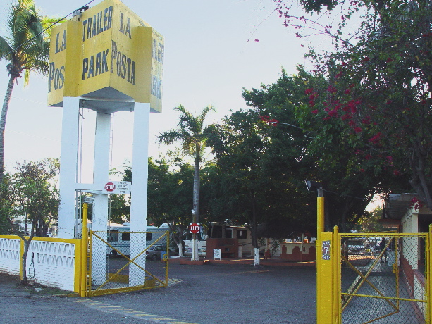 | Our headquarters for a week in Mazatlan was a large and busy RV park in the middle of the Zona de Oro (Gold Zone), where the resort hotels and tourist facilities of this major port city are concentrated. Although many of us would have preferred the birdy but ramshackle Playa Escondido on the northern outskirts, the downtown La Posta was unbeatable for the restocking and reconditioning needed on a long expedition. Available in the campground were laundry service, internet connections, haircuts, propane, vehicle washing and waxing, and minor repairs, while within walking distance were restaurants, night clubs, banks and ATMs, and a vast shopping mall with a modern grocery supermarket and a Sam's Club. |