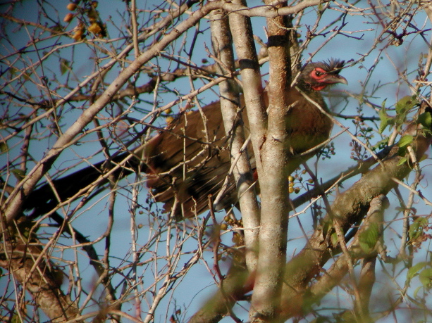 | From Daniel's terrace on a previous visit Charlie had seen a spectacular flight of Black-throated Magpie Jays, and the flamboyant Military Macaws also occur here. |