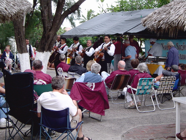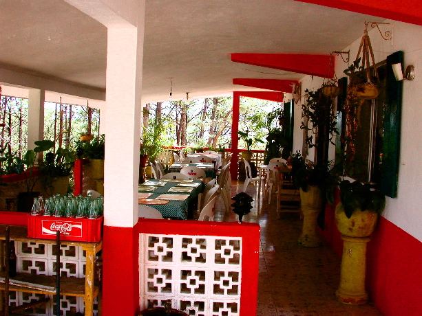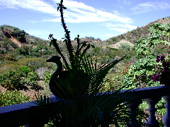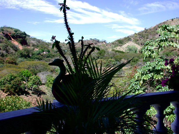 | In good weather Villa Blanca is a simple, clean, and charming establishment. It has been operated since its German founder died some years ago by the Mexican staff he trained, and still serves a distinctive German/Mexican cuisine. There were no guests when we arrived, but the staff made us welcome to their shady parking lot and served us dinner. The view is heart stopping, and at night the lights of Mazatlan can be seen forty miles away. |