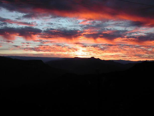 | We arose very early because of the absolute necessity for reaching the Barranca area by dawn. There a fiery sunrise was overture to an even more stunning reward. |
