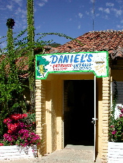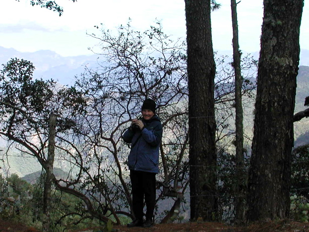 Alas, our hopes were dashed by two days of torrential downpours like nothing ever seen by veteran winter travelers to Mexico. Villa Blanca's rooms were awash, and in the first hundred yards up the Barranca trail everyone got so soaked and chilled that we retreated to Mazatlan in despair. Fortunately we had another opportunity, on our return trip home in early March, for a one-day dash from Mazatlan up the Durango highway. Carolyn and Charlie were able to precede the others by a day because Harry enabled us to spend the night in Villa Blanca's parking lot without a reservation. En routewe stopped for lunch at the lovely little hill town Copala. |