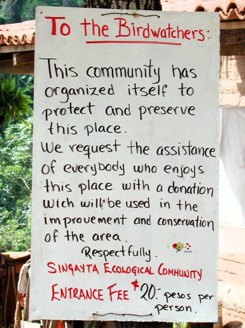 A new era in birder/resident relations may be portended by the village of Singayta (pronounced Sing-guy-ta), the best known and longest used inland birding destination around San Blas. |