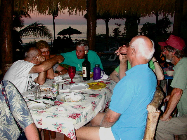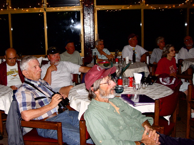 | We all got dressed to the nines (by caravan standards) for our most elegant meal at the Hotel Garza Canela. This San Blas jewel has long been celebrated among birders -- its name is the Spanish name for the Cinnamon or Boat-billed Heron -- and its restaurant is truly distinguished for both cuisine and service. |