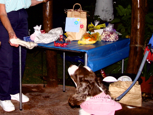 | Almost anything might occasion a gathering. One enjoyable event was the hot-dog birthday party that Jim and Gwen Woodhouse threw for their much indulged dog Penny. |