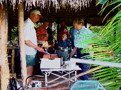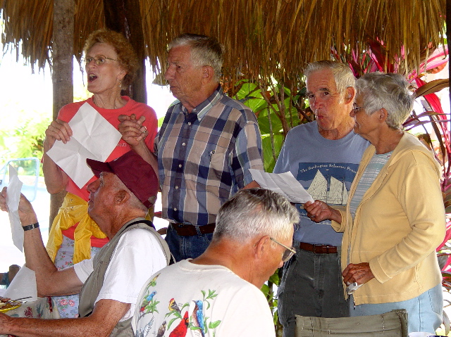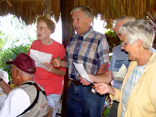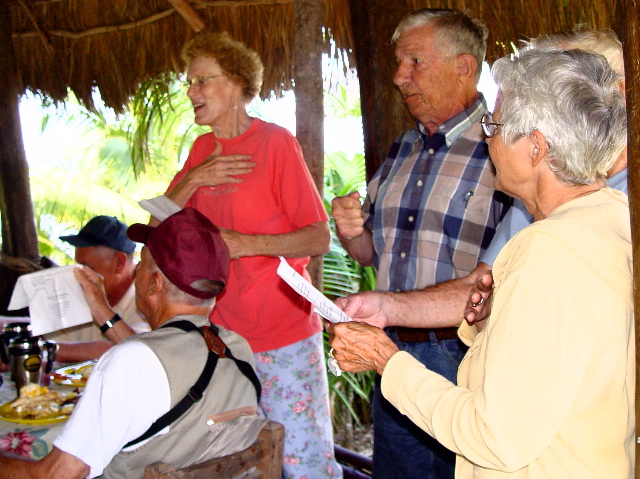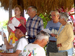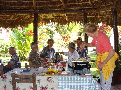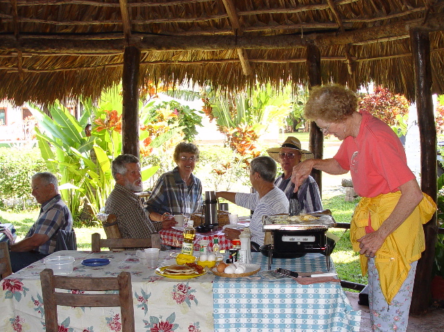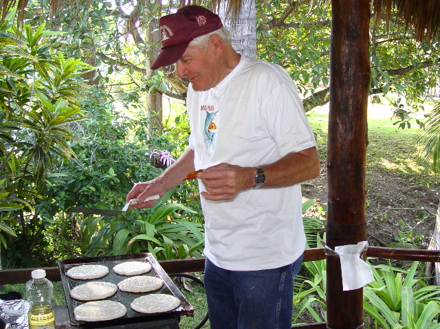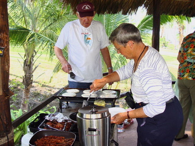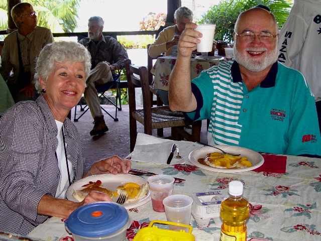 | Our social life at Paraiso Miramar peaked on Super Bowl Sunday, February 1. This memorable day opened with a lavish pancake breakfast laid on by our leaders, the Stouts and Whittens. |